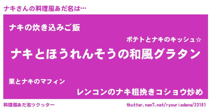 | ヒーロー風カッコイイあだ名 | 『サイバー戦士ナキ』『炎刃騎士ナキ』 |