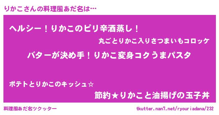 | 欧米人風あだ名 | 『ダニエルりかこ』『ケンブリッジりかこ』 |
