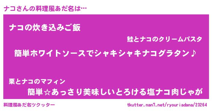 | 女子向けラノベタイトル風あだ名 | 『ナコ様がみてる』『死神ナコの再婚』 |