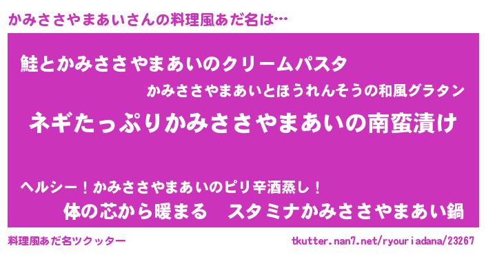| ヒーロー風カッコイイあだ名 | 『スーパーカミササヤマアイ』 |