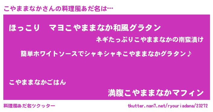 | 男性向けラノベタイトル風あだ名 | 『こやままなかの嫁は女の子じゃないと思った?』 |