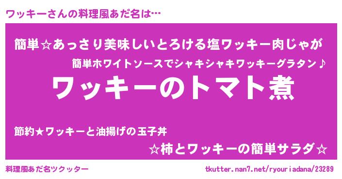 | 女子向けラノベタイトル風あだ名 | 『ワッキー夫妻のなれそめ』 |