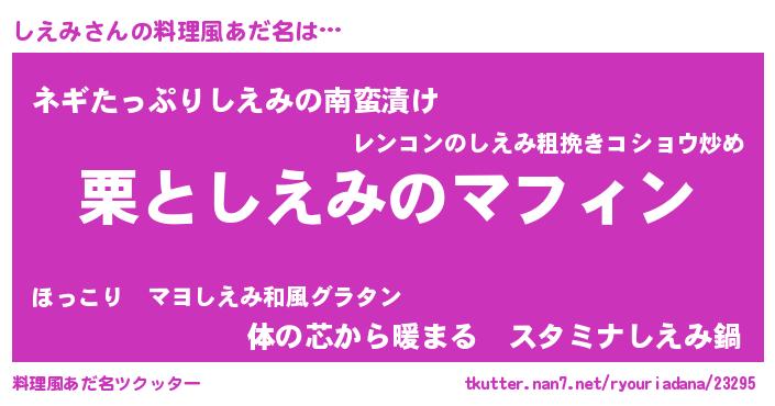 意味不明あだ名 | 『ペロリンしえみ』『しえみフォーエバー』 |