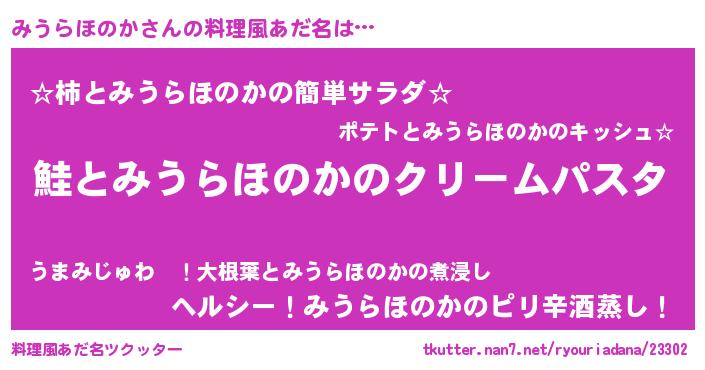 | 男性向けラノベタイトル風あだ名 | 『ノーゲーム・ノーミウラホノカ』 |