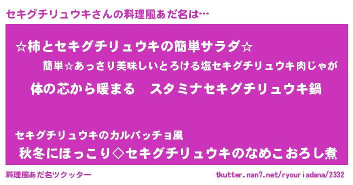 | 欧米人風あだ名 | 『セキグチリュウキクリステル』 |