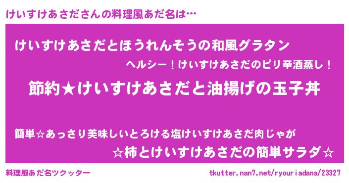 | ヘコむあだ名 | 『けいふぇ~』『けいすけあさだ(苦笑)』 |