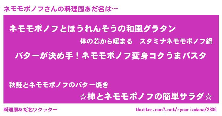 | ヒーロー風カッコイイあだ名 | 『慈愛の使者ネモモポノフ』 |