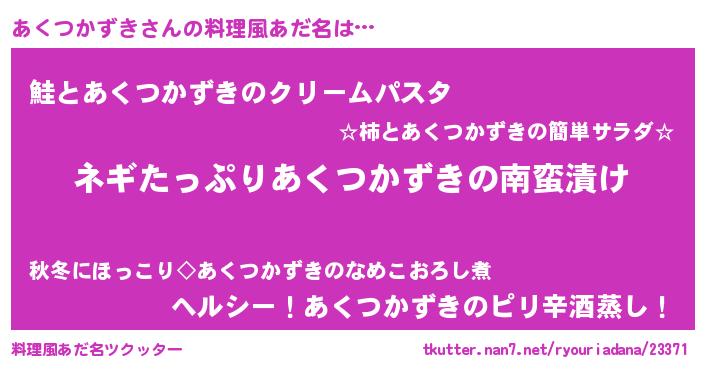 | 男性向けラノベタイトル風あだ名 | 『アクツカズキアートオンライン』 |