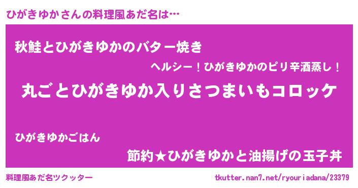 | 男性向けラノベタイトル風あだ名 | 『この素晴らしい世界にひがきゆかを!』 |