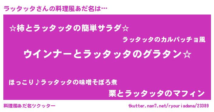 | 胡散臭い通販商品みたいなあだ名 | 『世界が平和になる高級そうな皿…その名も「ラッタッタ」』 |