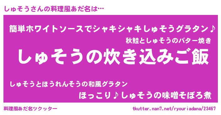 | 胡散臭い通販商品みたいなあだ名 | 『伝統あるサプリメント…その名も「しゅそう」』 |