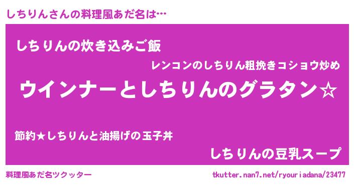 | ヘコむあだ名 | 『なまこ酢』『しちぷりん』 |