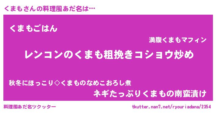 | 女子向けラノベタイトル風あだ名 | 『くまもなんてお断りですっ。』 |