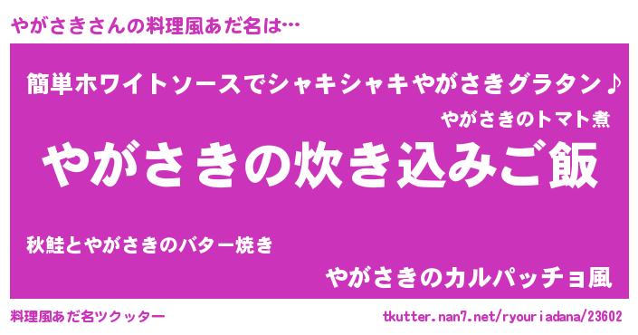 | 男性向けラノベタイトル風あだ名 | 『うちのやがさきが世界を掌握している!』 |
