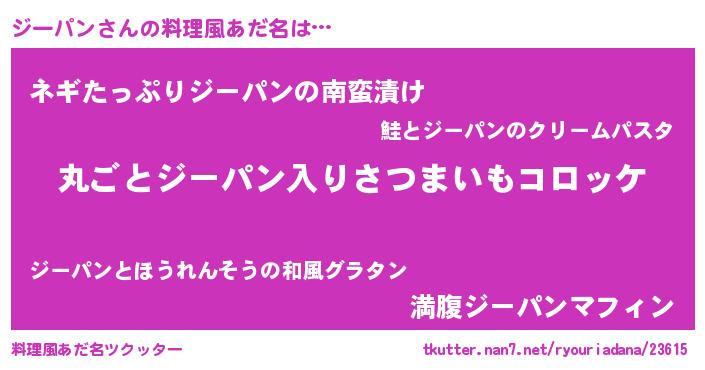 | 意味不明あだ名 | 『住所不定無職ジーパン(11歳)』 |