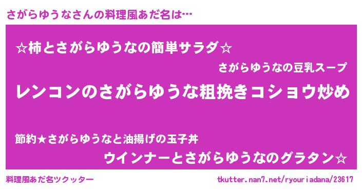 | 恥ずかしいあだ名 | 『サガラユウナデラックス』『さがっちょ』 |