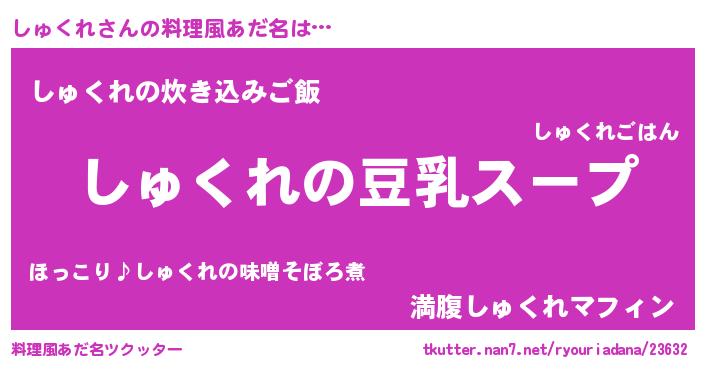| 胡散臭い通販商品みたいなあだ名 | 『信頼と実績のサプリメント…その名も「しゅくれ」』 |