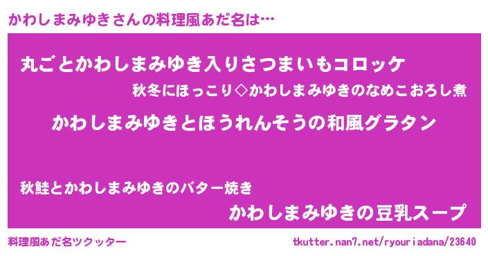 | ヘコむあだ名 | 『かわお』『かわしまみゆき(笑)』 |