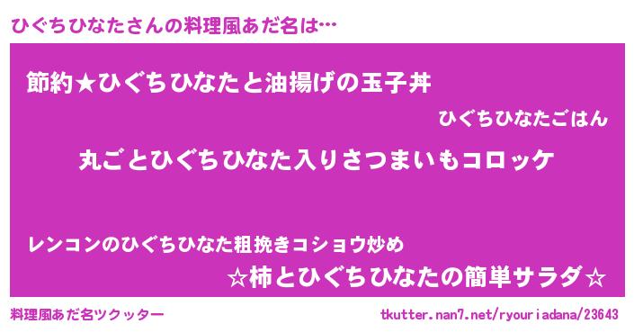 | 意味不明あだ名 | 『住所不定無職ひぐちひなた(85歳)』 |