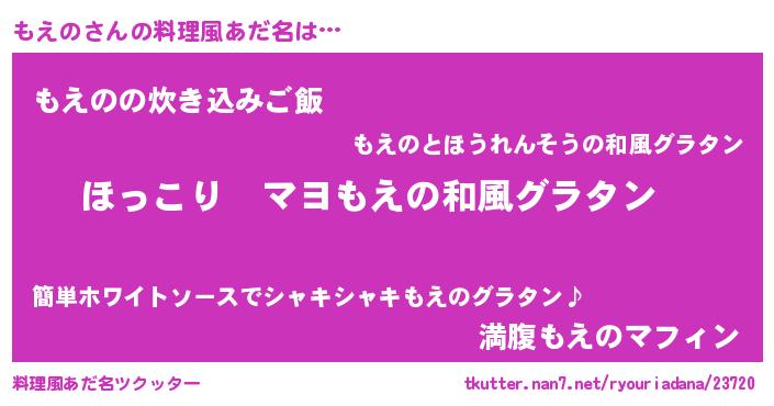 | 意味不明あだ名 | 『住所不定無職もえの(65歳)』 |