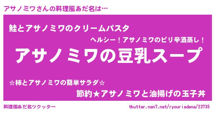 | 意味不明あだ名 | 『とにかく怪しいアサノミワ』 |