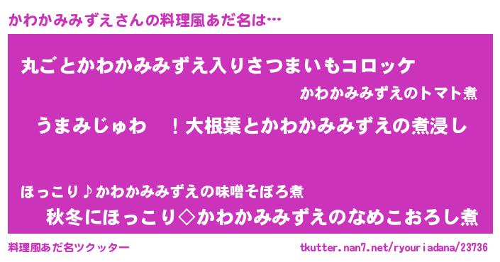 | 女子向けラノベタイトル風あだ名 | 『かわかみみずえの婚約者』 |