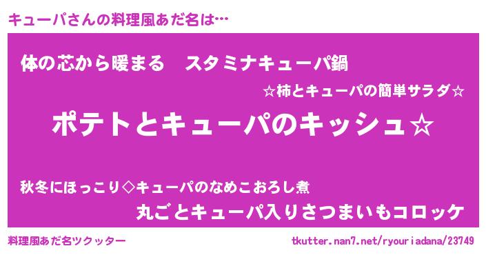 | 意味不明あだ名 | 『とにかく怪しいキューパ』 |