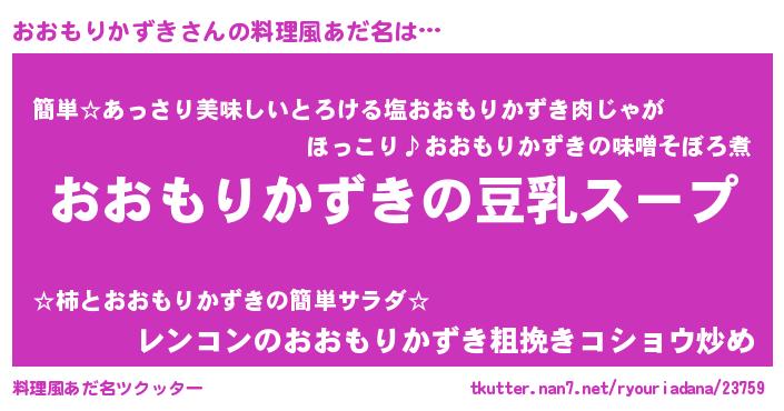 | 女子向けラノベタイトル風あだ名 | 『おおもりかずきは平凡を望む』 |
