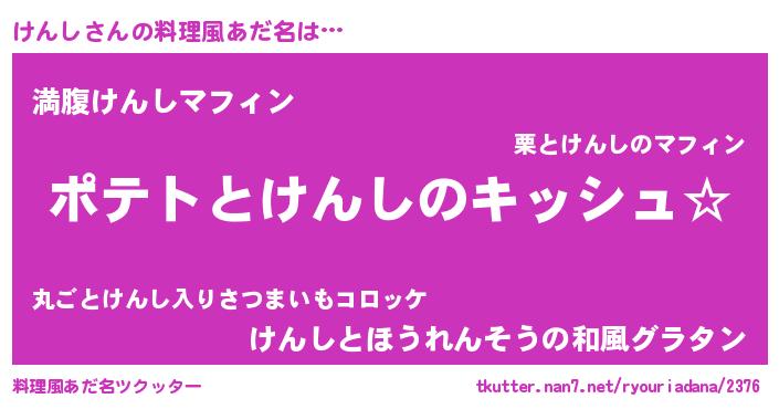 | ピコ太郎風あだ名 | 『ケン二郎』『ピコケ郎』『ケケ太郎』 |