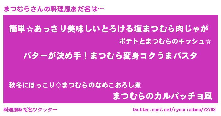 | 女子向けラノベタイトル風あだ名 | 『まつむら恋絵巻』 |