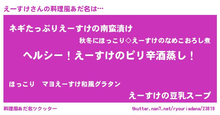 | 女子向けラノベタイトル風あだ名 | 『闇のえーすけ』『えーすけは平凡を望む』 |