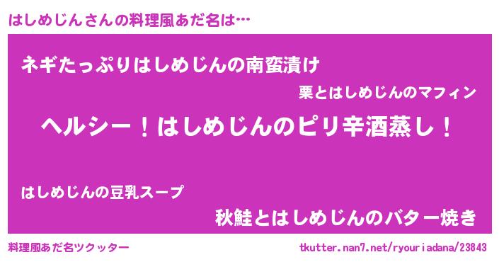 | 男性向けラノベタイトル風あだ名 | 『Re:はしめじんから始める異世界生活』 |