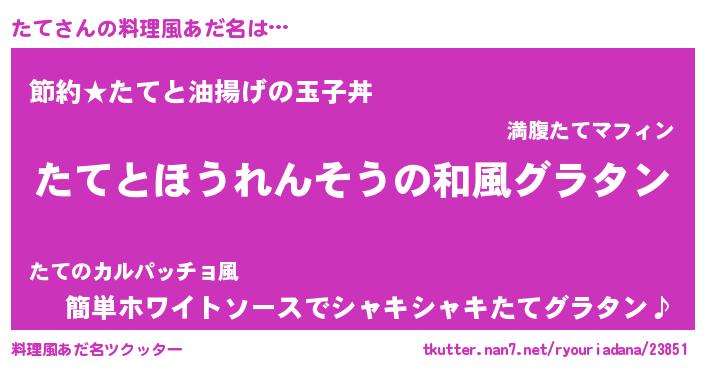 | ヒーロー風カッコイイあだ名 | 『スーパータテ』『幻影騎士タテ』 |