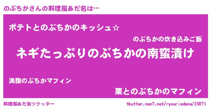 | 男性向けラノベタイトル風あだ名 | 『ノブチカアートオンライン』 |
