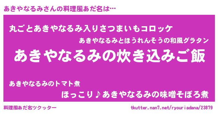 | 男性向けラノベタイトル風あだ名 | 『うちのあきやなるみが世界を掌握している!』 |