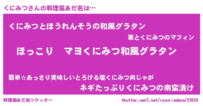| 男性向けラノベタイトル風あだ名 | 『この素晴らしい世界にくにみつを!』 |