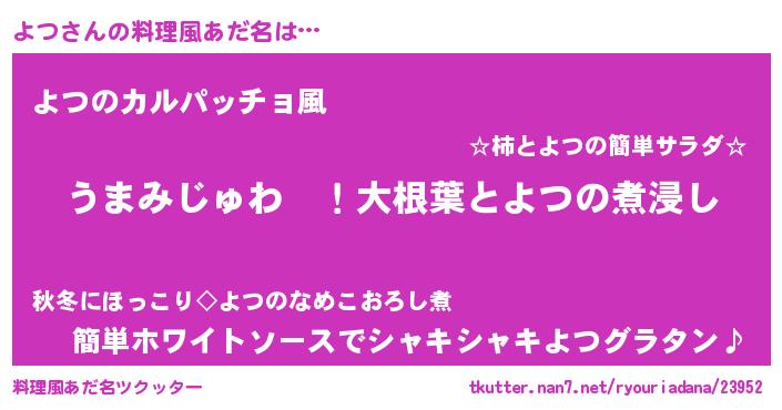 | 胡散臭い通販商品みたいなあだ名 | 『運命の人と巡り会える高級そうな皿…その名も「よつ」』 |
