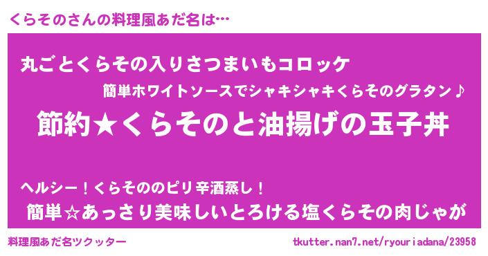 | ヘコむあだ名 | 『くらにゅー』『くらその(小並感)』 |