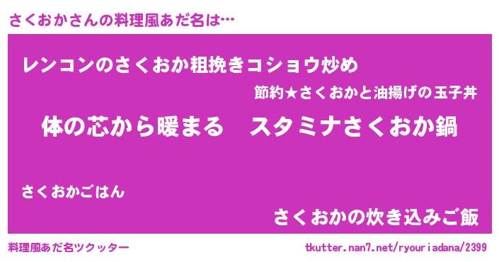 | 女子向けラノベタイトル風あだ名 | 『さくおかの雑貨屋さん』 |