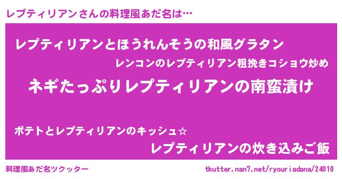 | ポケモン風あだ名 | 『レプチュウ』『レプキング』 |