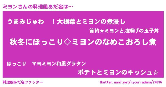 | 男性向けラノベタイトル風あだ名 | 『ミヨンに滅ぼされるだけの簡単なお仕事です』 |