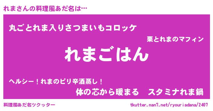 | 男性向けラノベタイトル風あだ名 | 『レマスレイヤー』『魔弾の王とれま』 |
