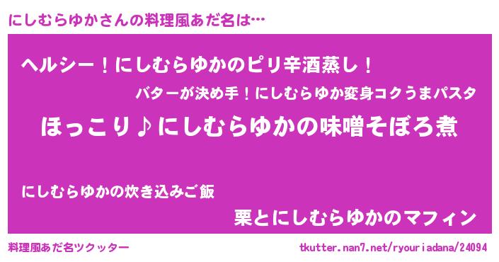 | ヒーロー風カッコイイあだ名 | 『スーパーニシムラユカ』『幻影騎士ニシ』 |