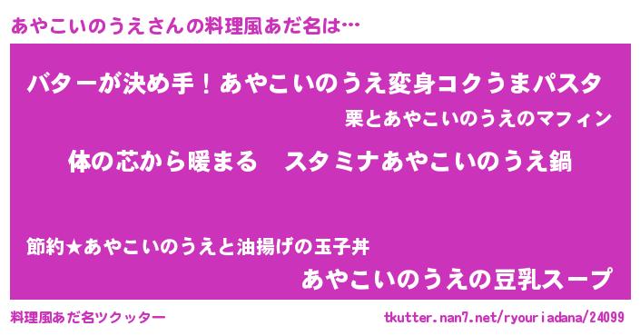 | ポケモン風あだ名 | 『アヤコダネ』『アックウザ』 |