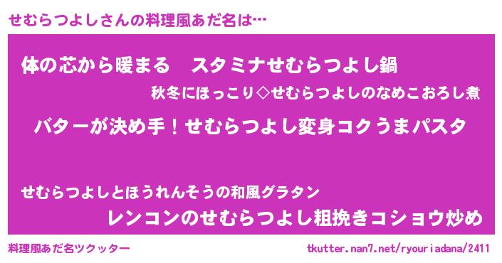 | ヘコむあだ名 | 『なまこ酢』『せむっふぃ~』 |