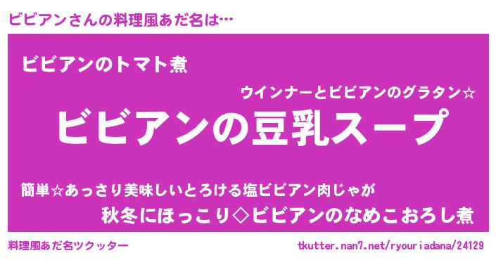 | ヒーロー風カッコイイあだ名 | 『魔戒騎士ビビ』『正義の使者ビビアン』 |