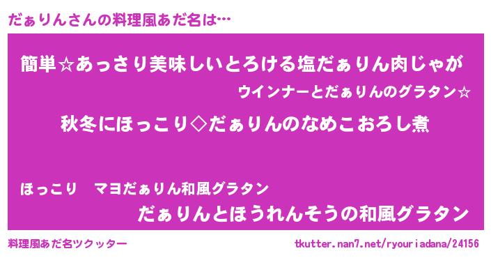 | ヒーロー風カッコイイあだ名 | 『ネオダァリン』『ウルトラだぁりんマン』 |