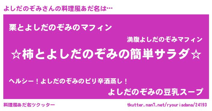 | 胡散臭い通販商品みたいなあだ名 | 『信頼と実績のサプリメント…その名も「よしだのぞみ」』 |