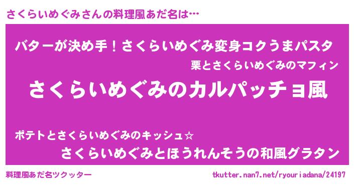 | 意味不明あだ名 | 『住所不定無職さくらいめぐみ(7歳)』 |