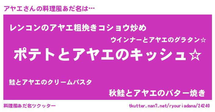 | ヒーロー風カッコイイあだ名 | 『幻影騎士アヤ』『最強戦士アヤエ』 |
